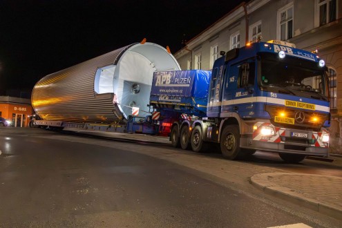 Transport a instalace pivovarských tanků v Plzni