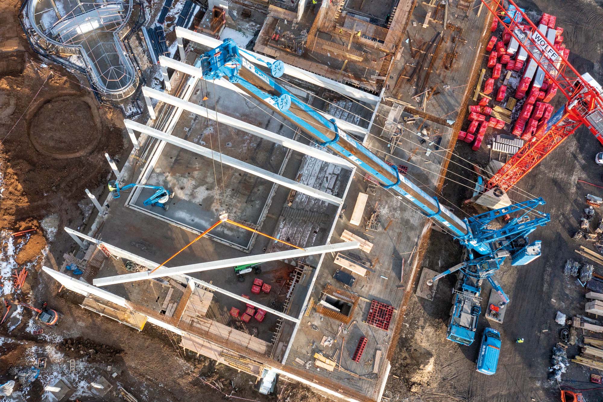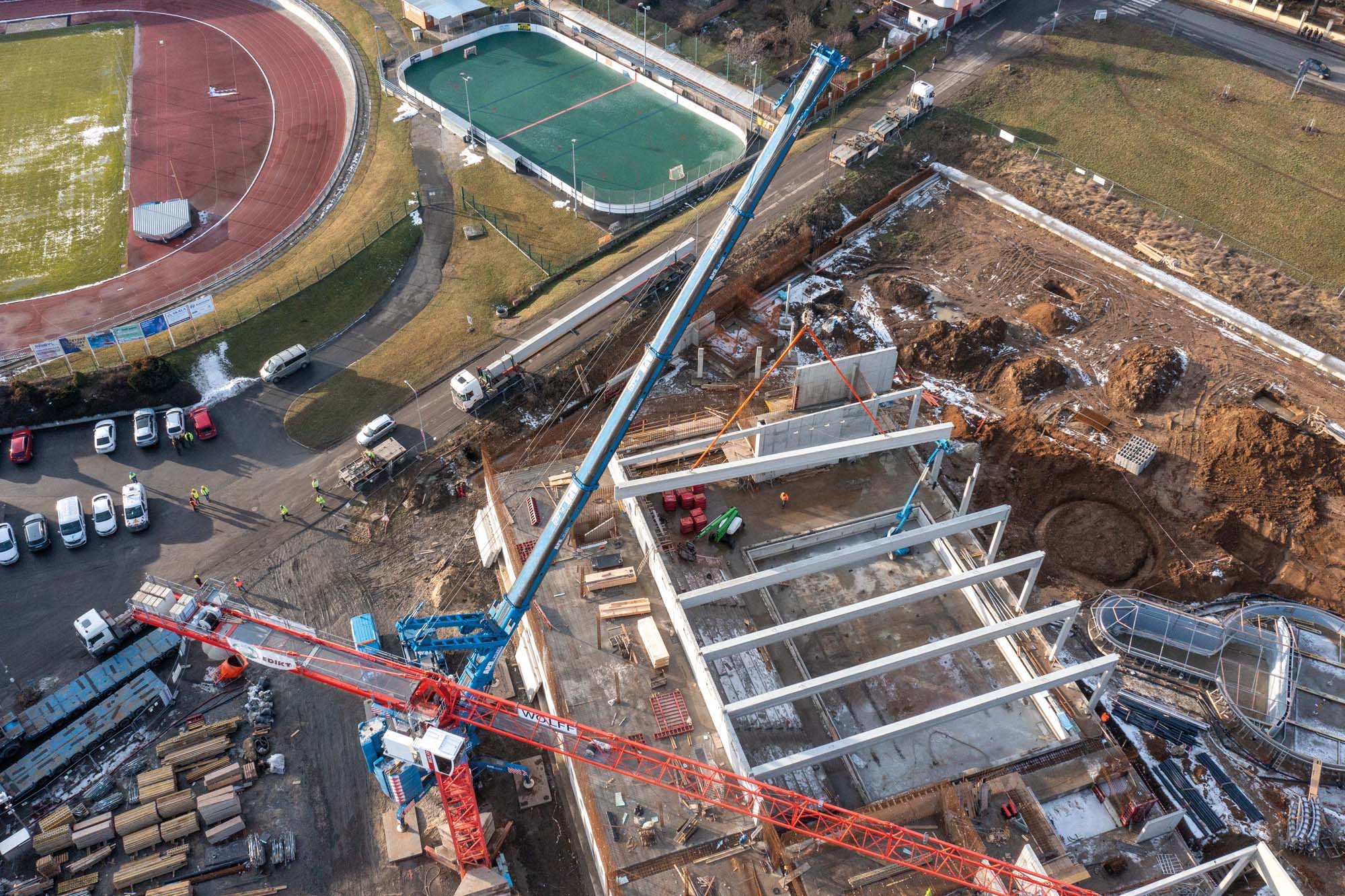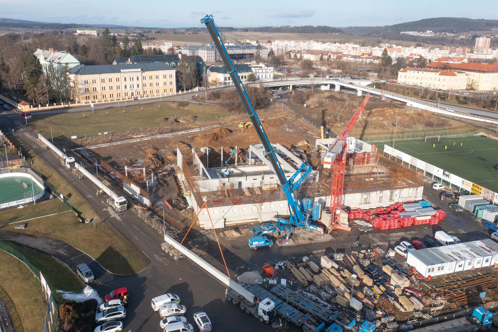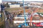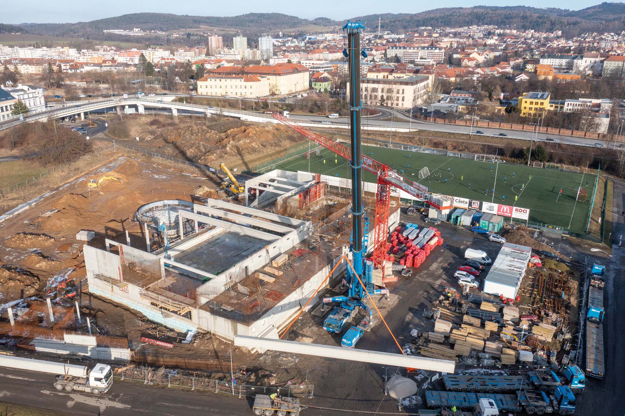 Demag AC 500 v akci: 6 nosníků | 26 tun | 30 m. Další krok stavby hotov.