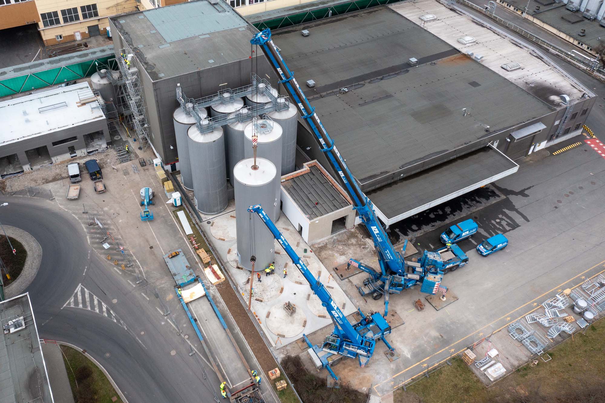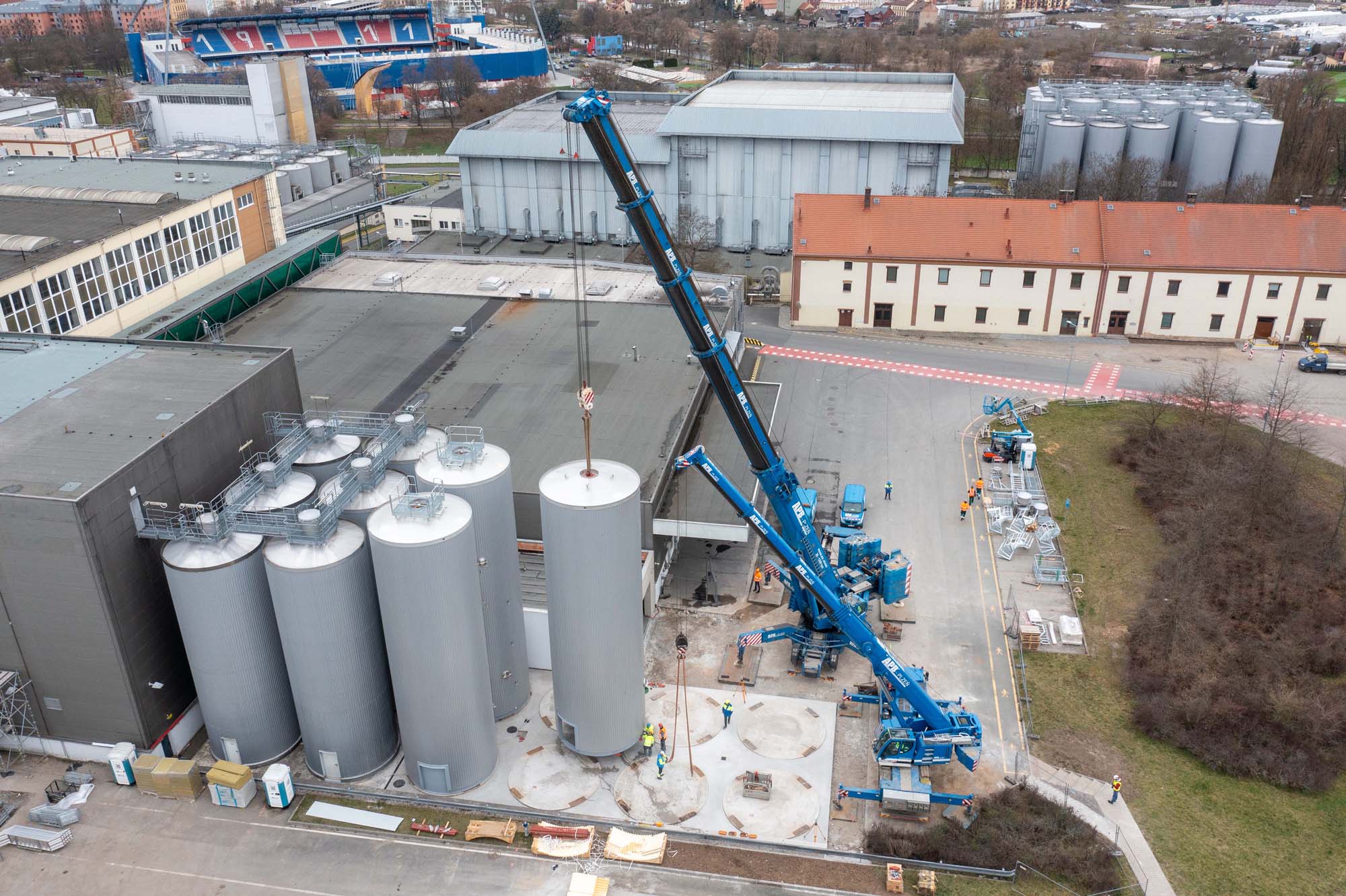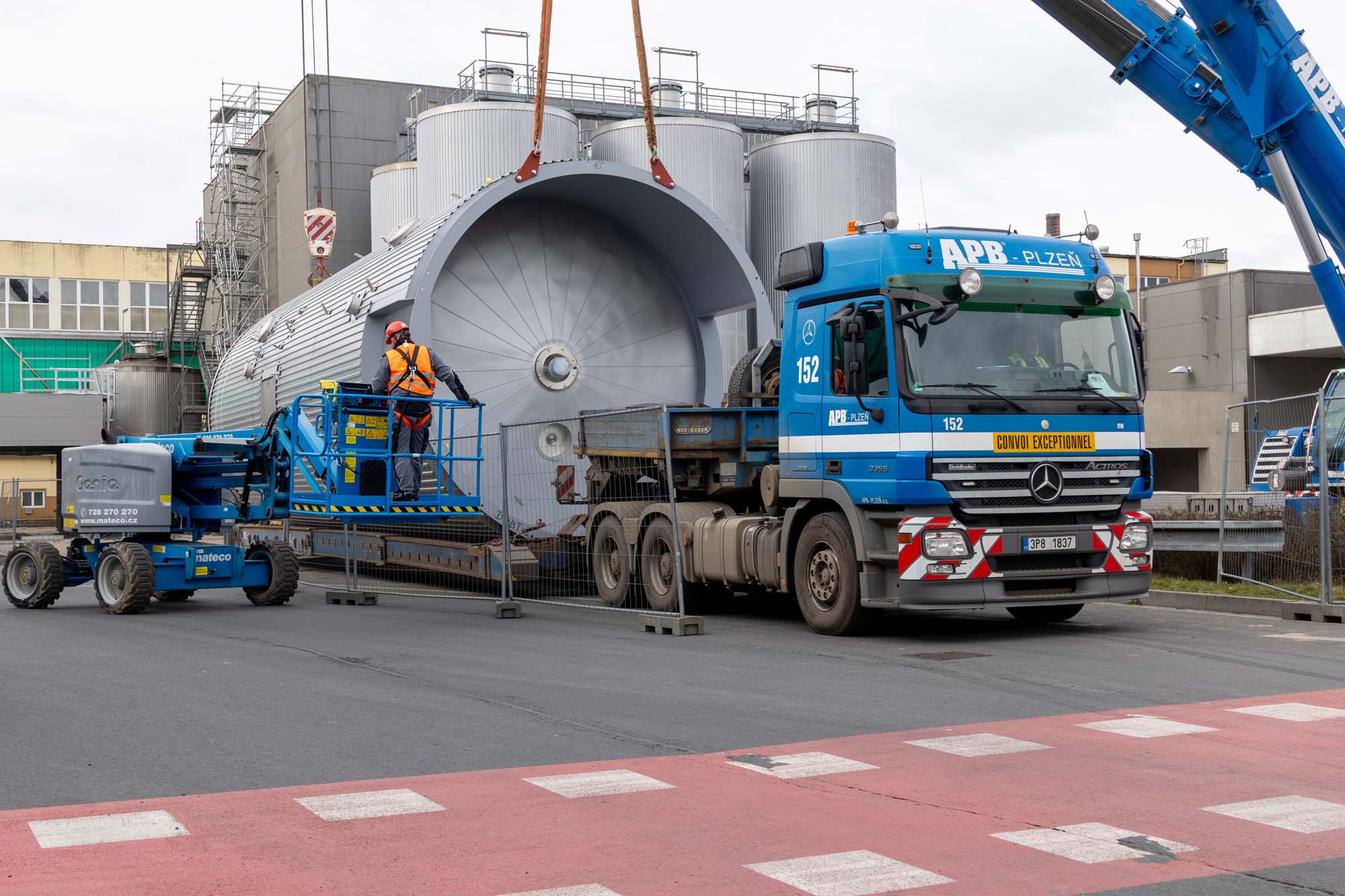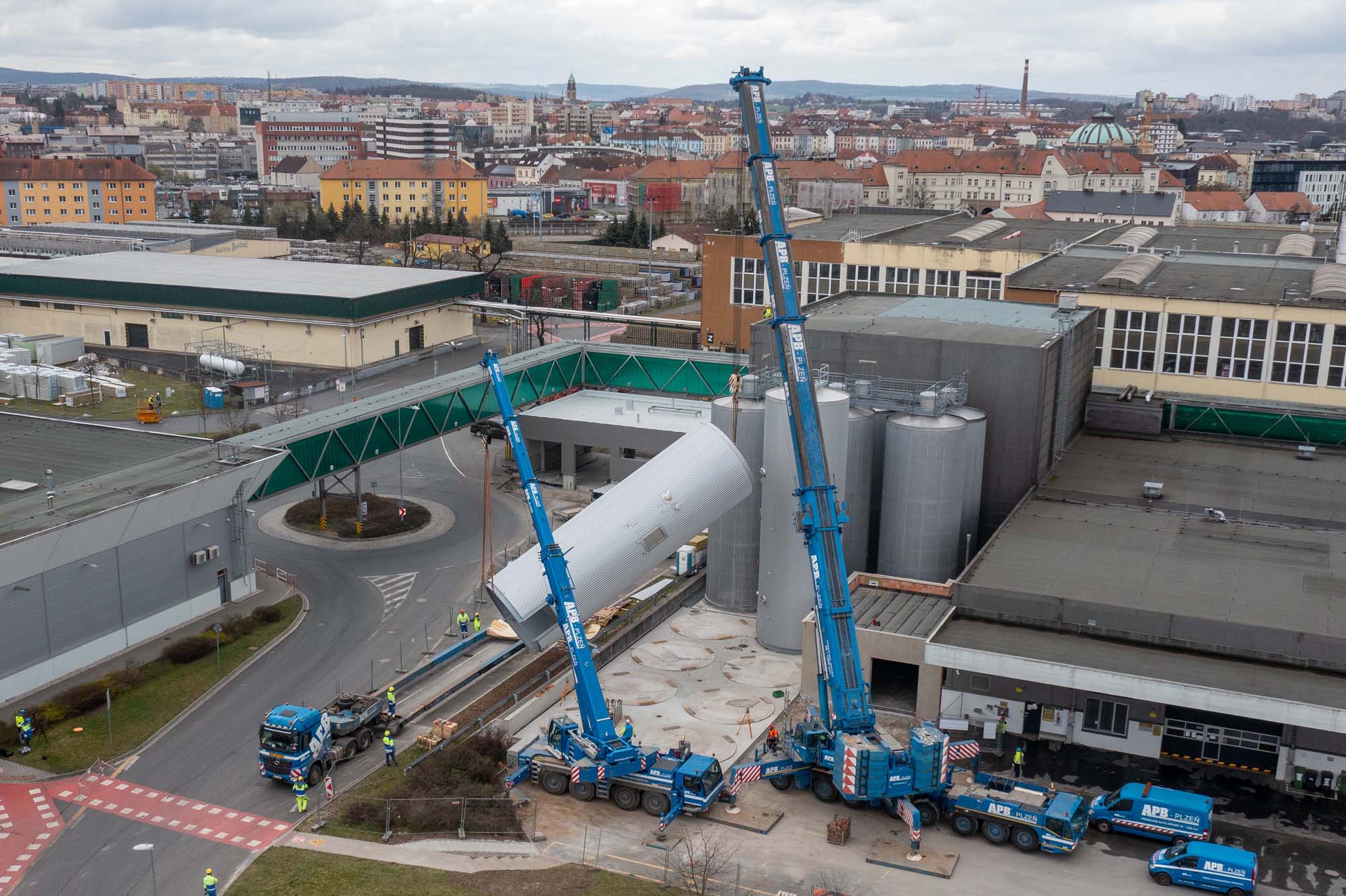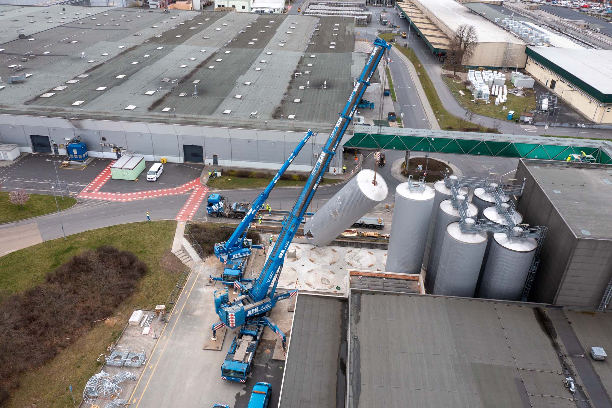 Transport a instalace pivovarských tanků v Plzni