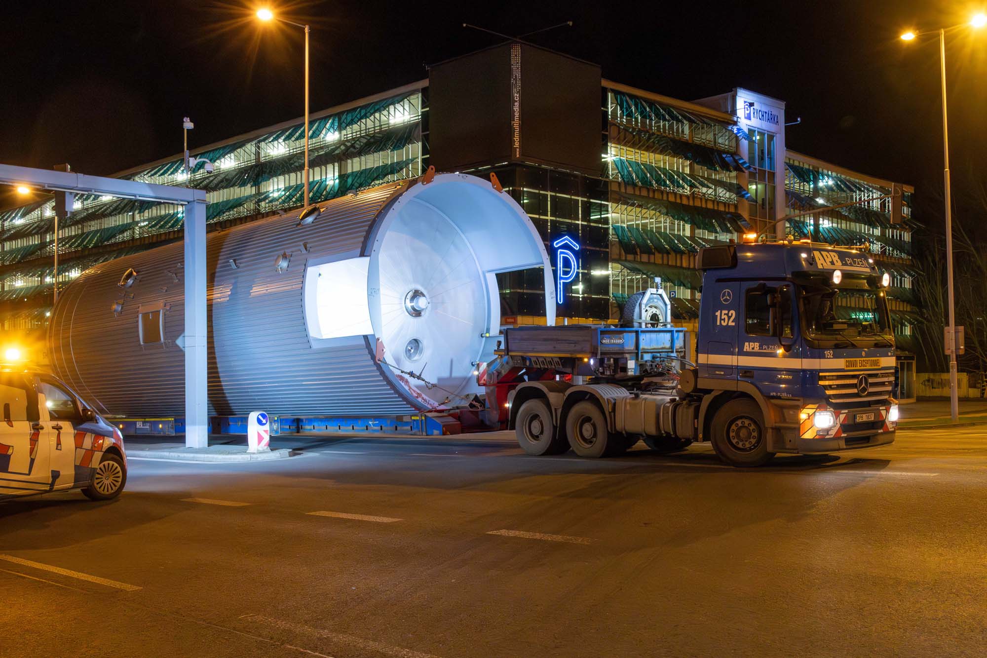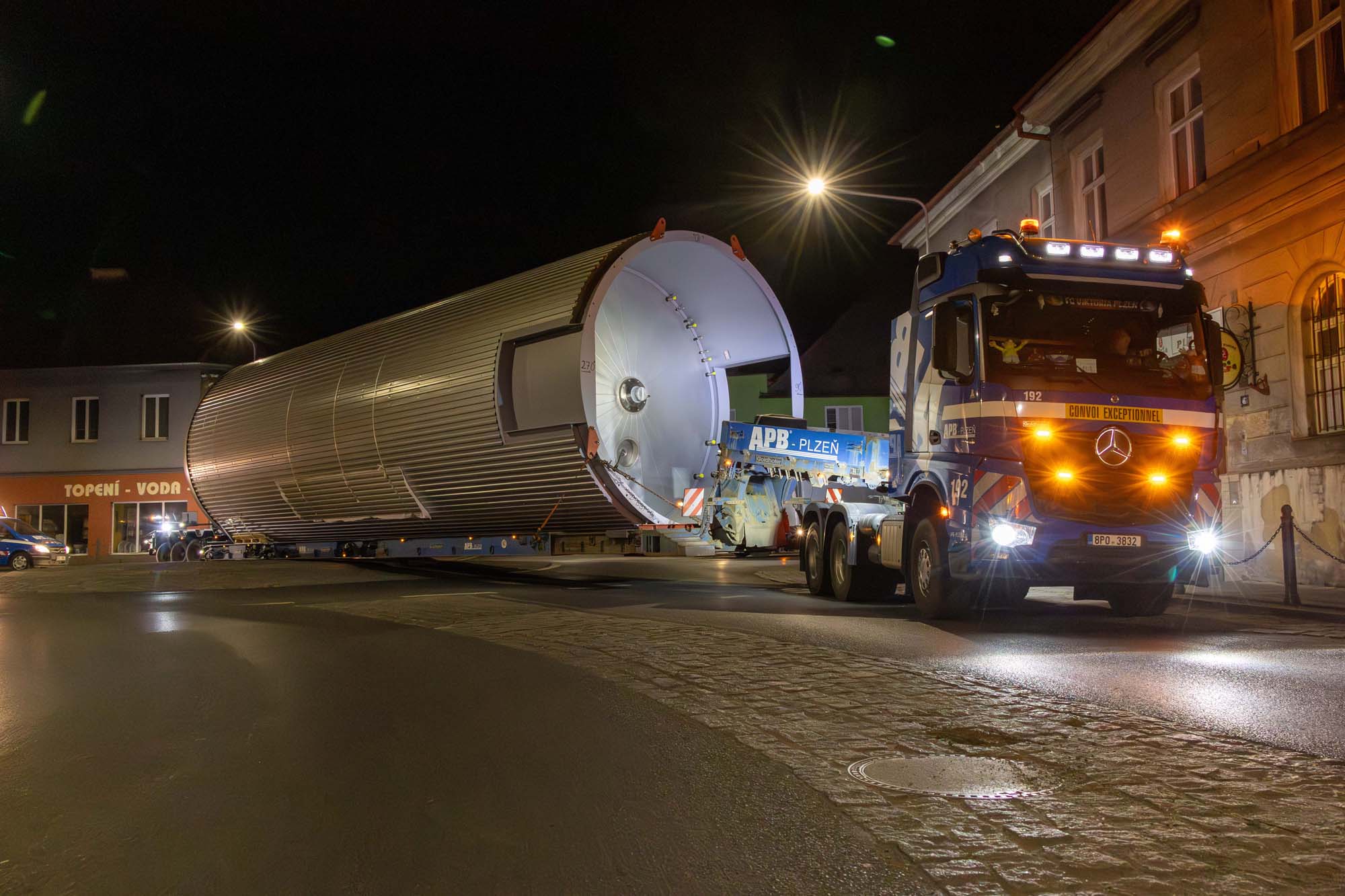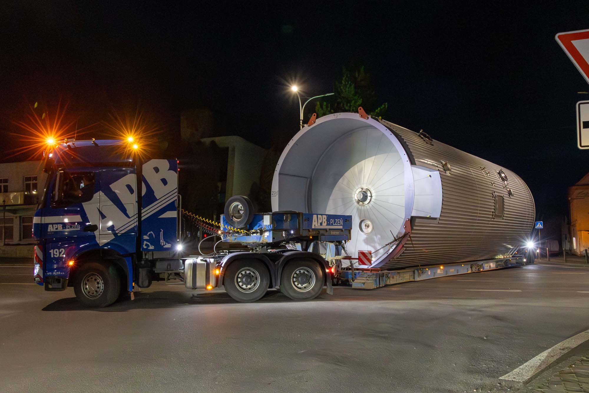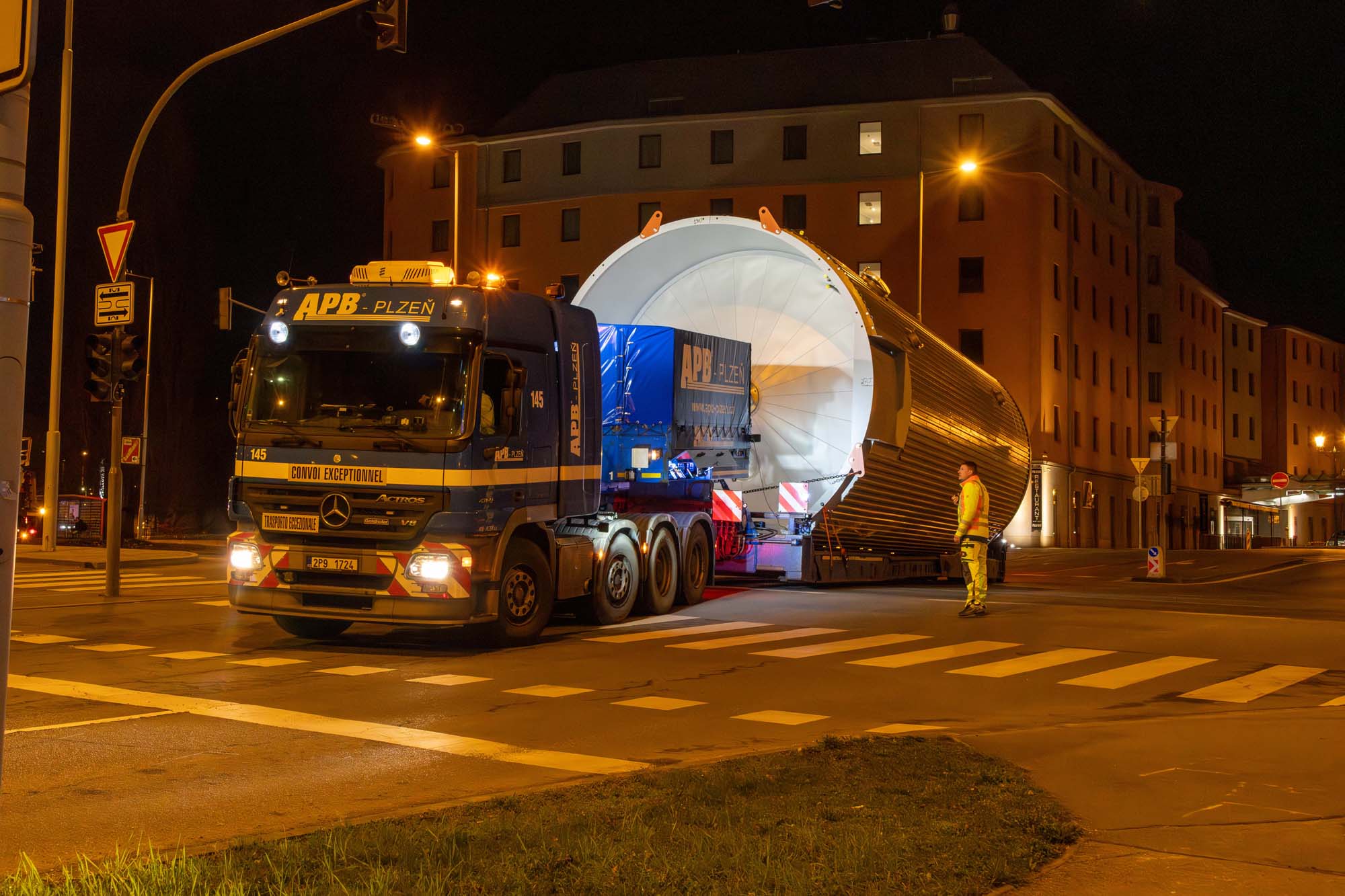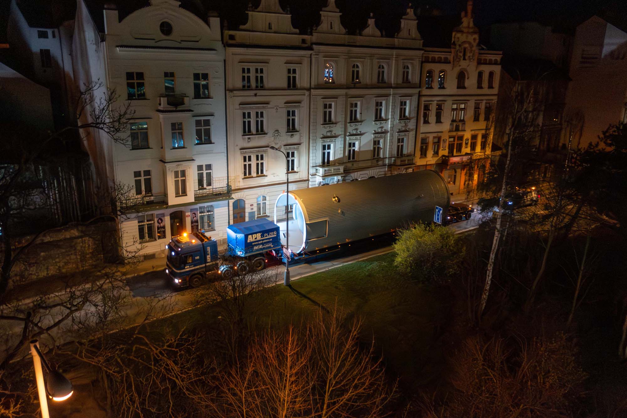 Transport a instalace pivovarských tanků v Plzni