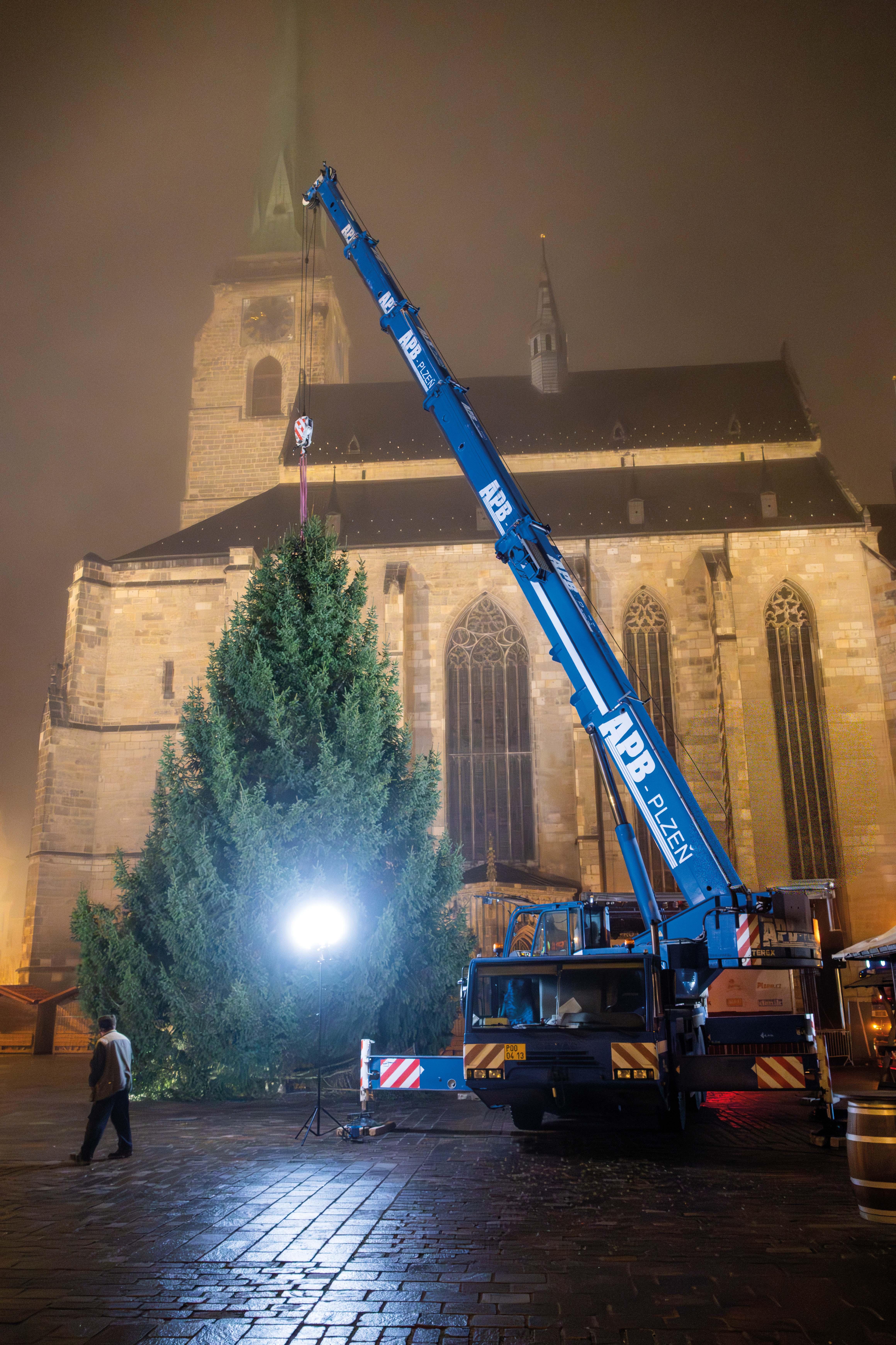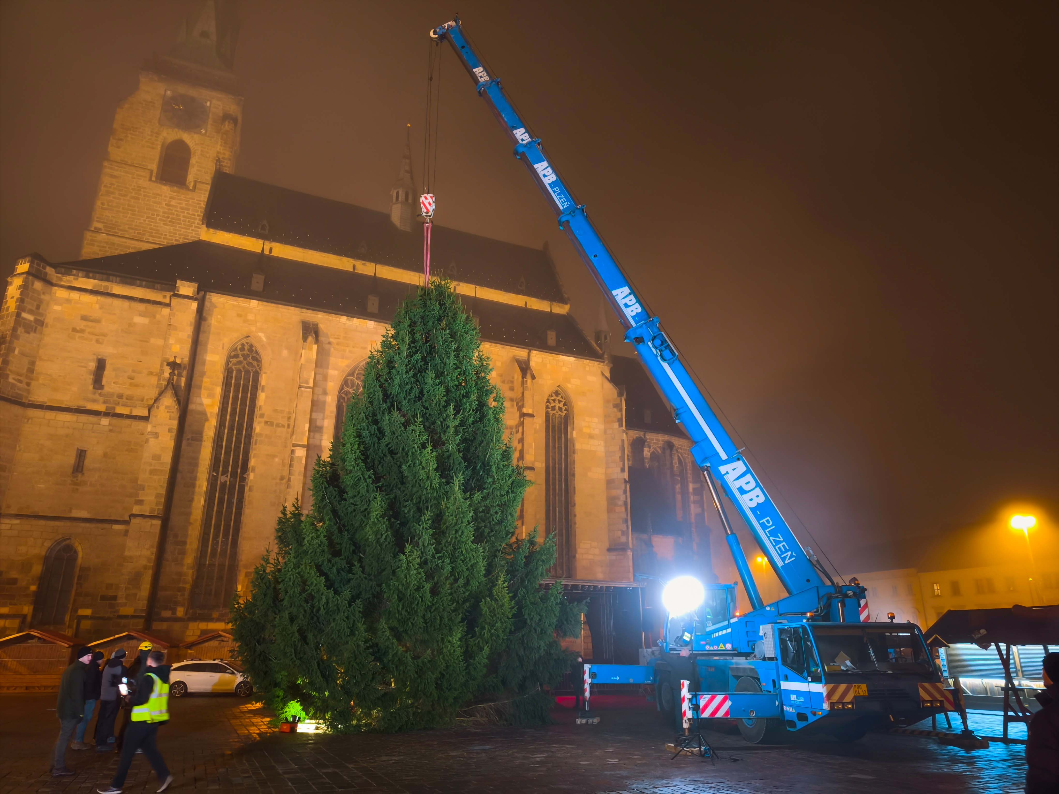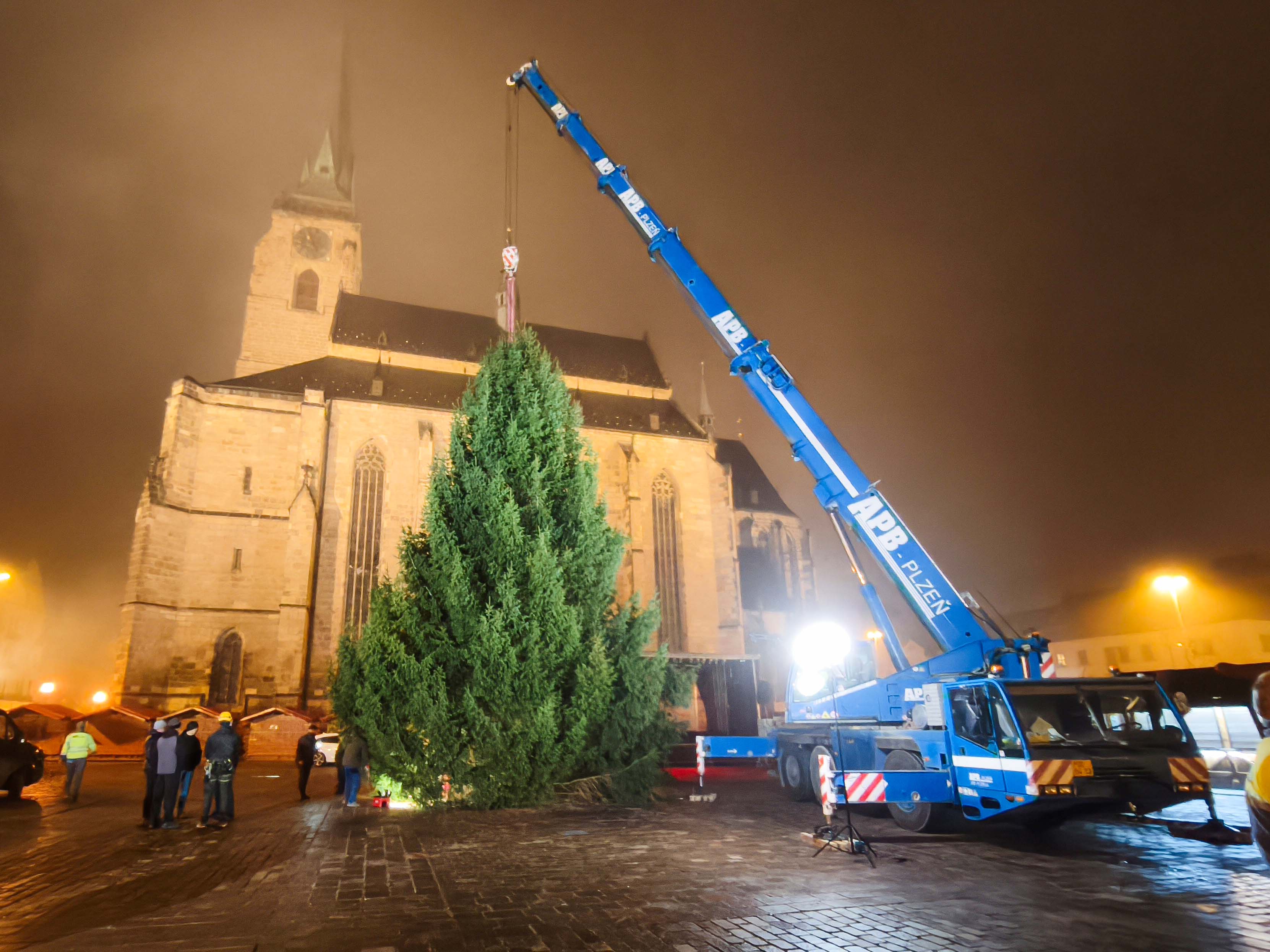 Po příjezdu do centra města se do práce pustil náš autojeřáb AC 50, který s maximální přesností usadil majestátní smrk do připravené šachty. Celá akce proběhla bez komplikací, a tak může tento krásný symbol Vánoc rozzářit srdce všech Plzeňanů i návštěvníků města.