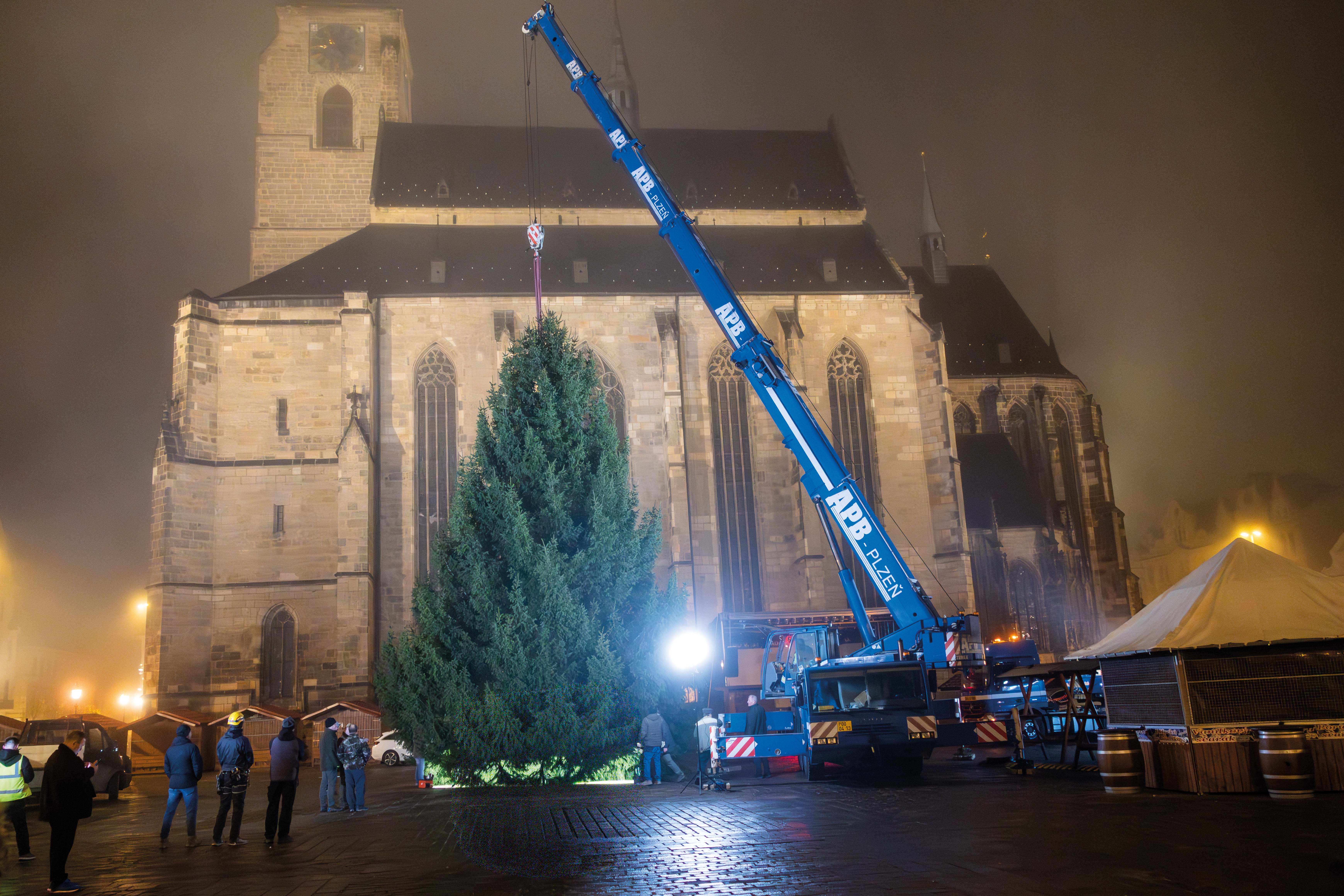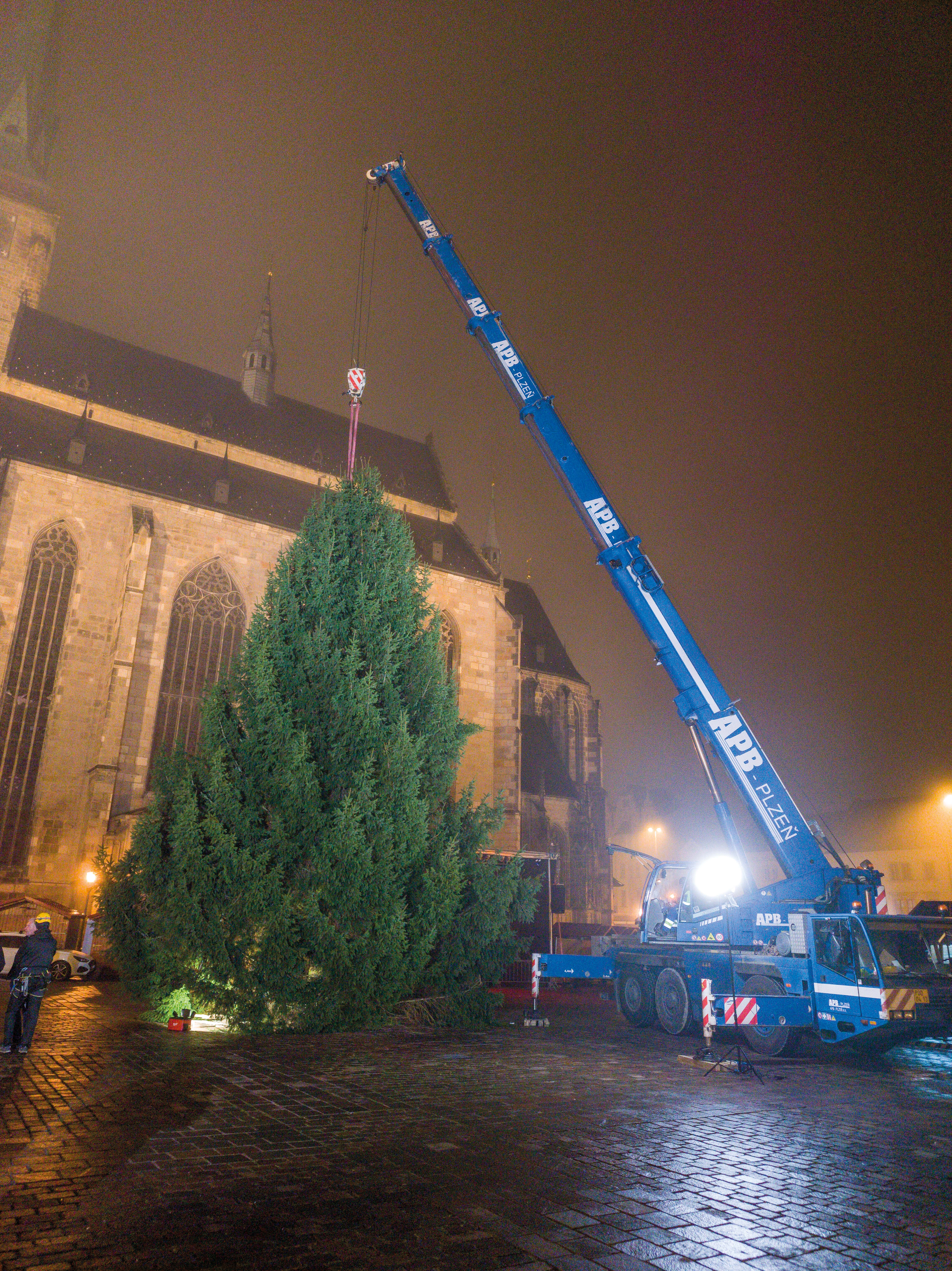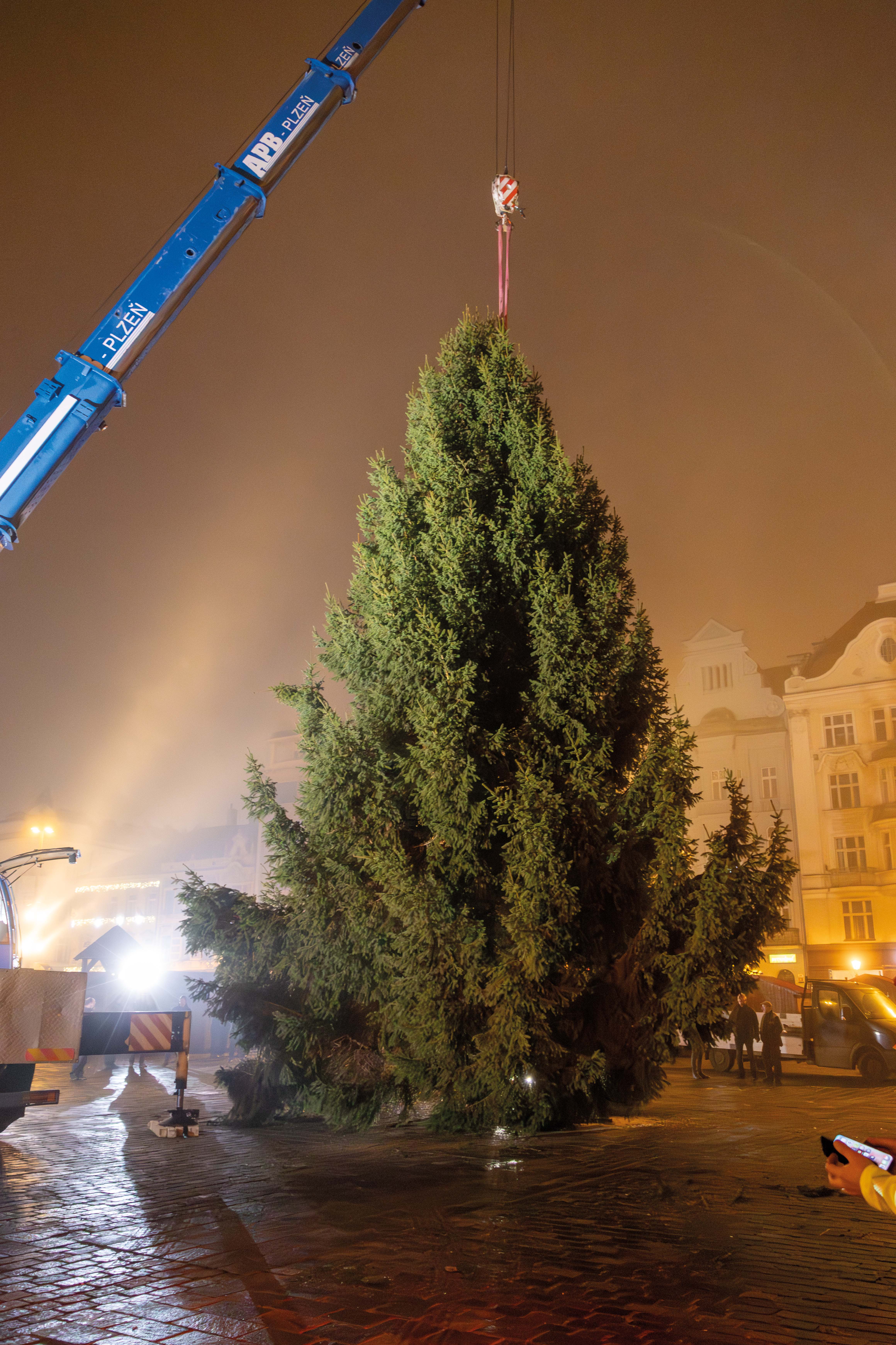 Po příjezdu do centra města se do práce pustil náš autojeřáb AC 50, který s maximální přesností usadil majestátní smrk do připravené šachty. Celá akce proběhla bez komplikací, a tak může tento krásný symbol Vánoc rozzářit srdce všech Plzeňanů i návštěvníků města.